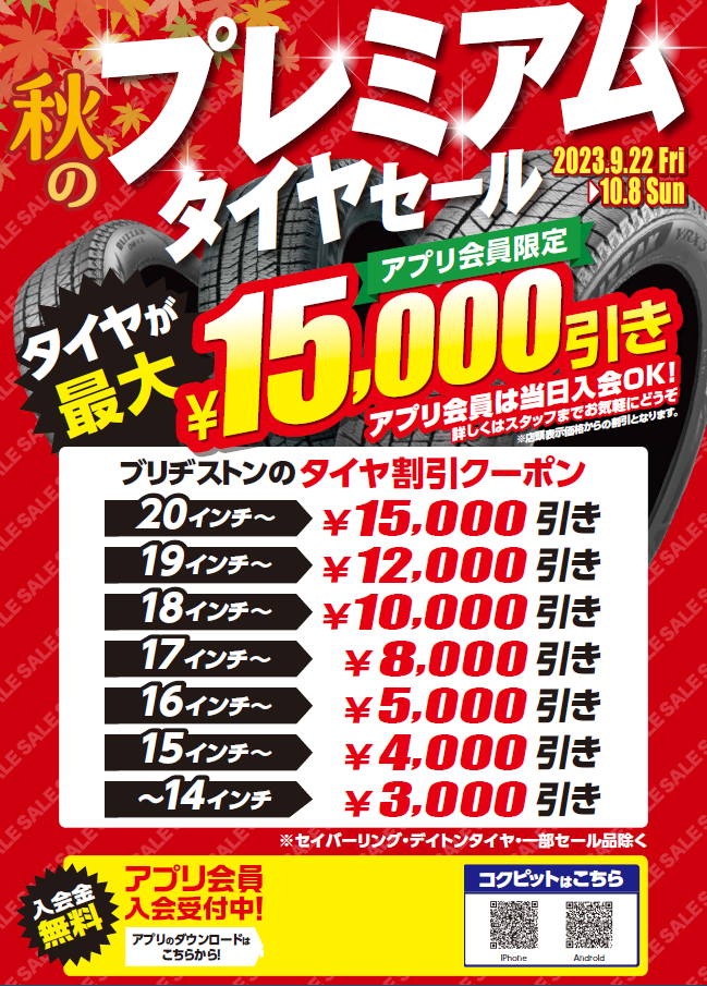 サイズにより最大15,000円引き!(一部タイヤ対象外)