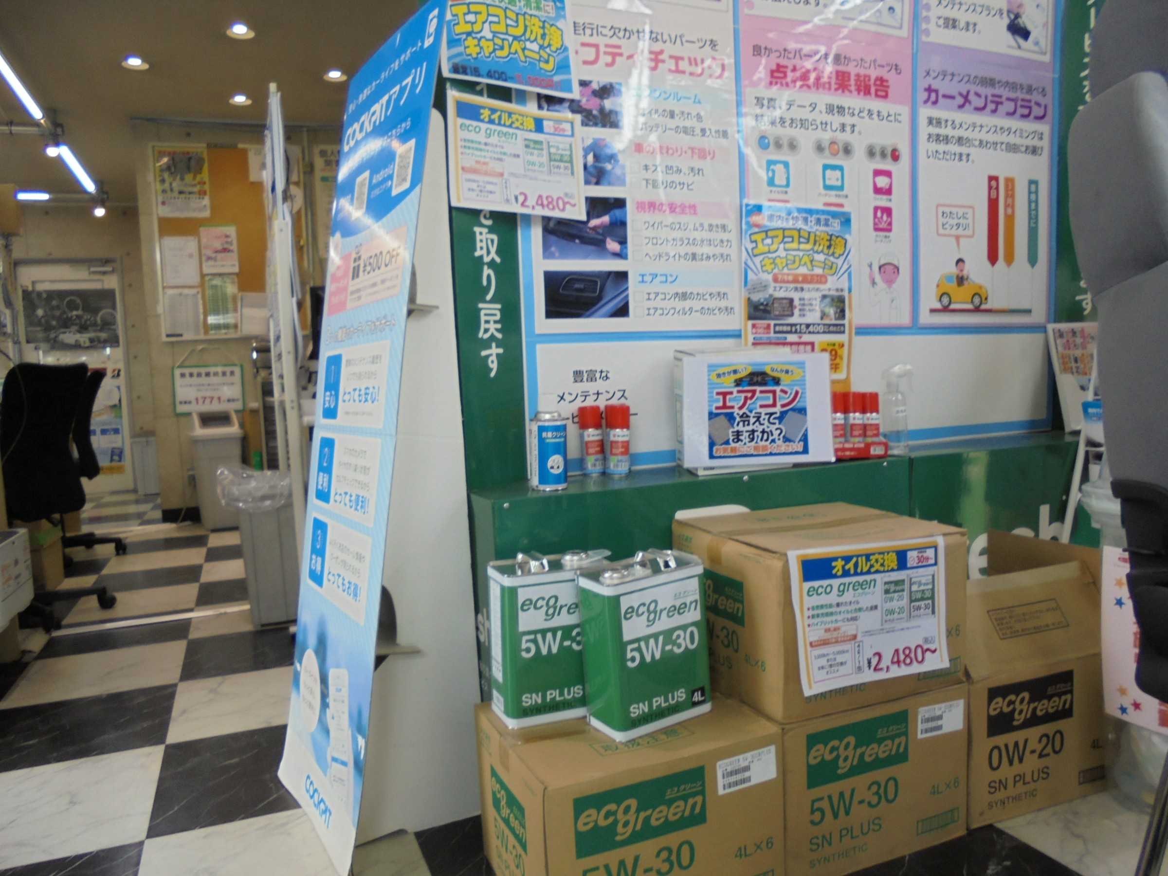 5W30、0W20共にエコグリーンオイル4Ⅼを2,480円にて!