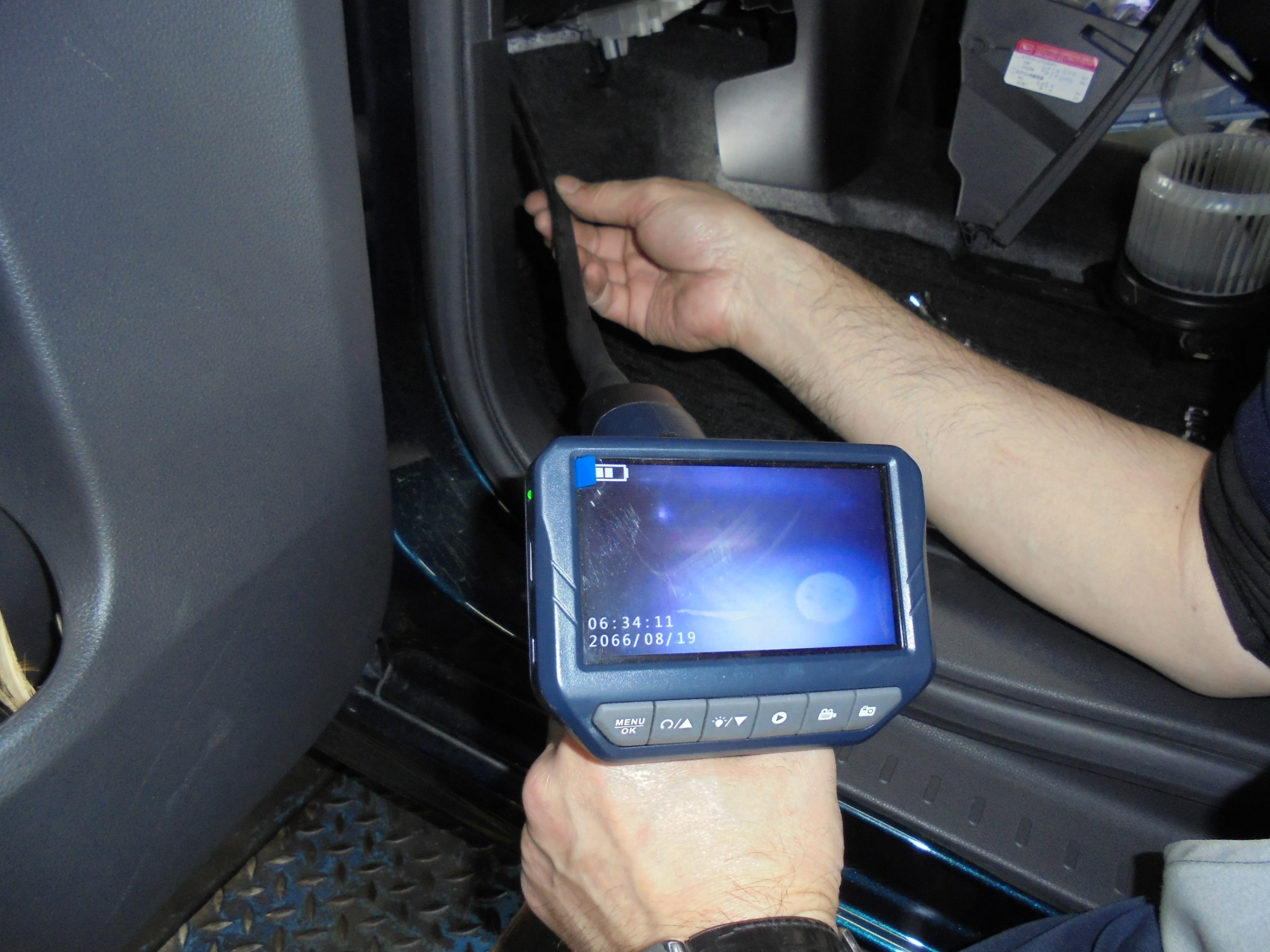 このモニターでエバポレーターを探しながら洗浄します(^^)/
