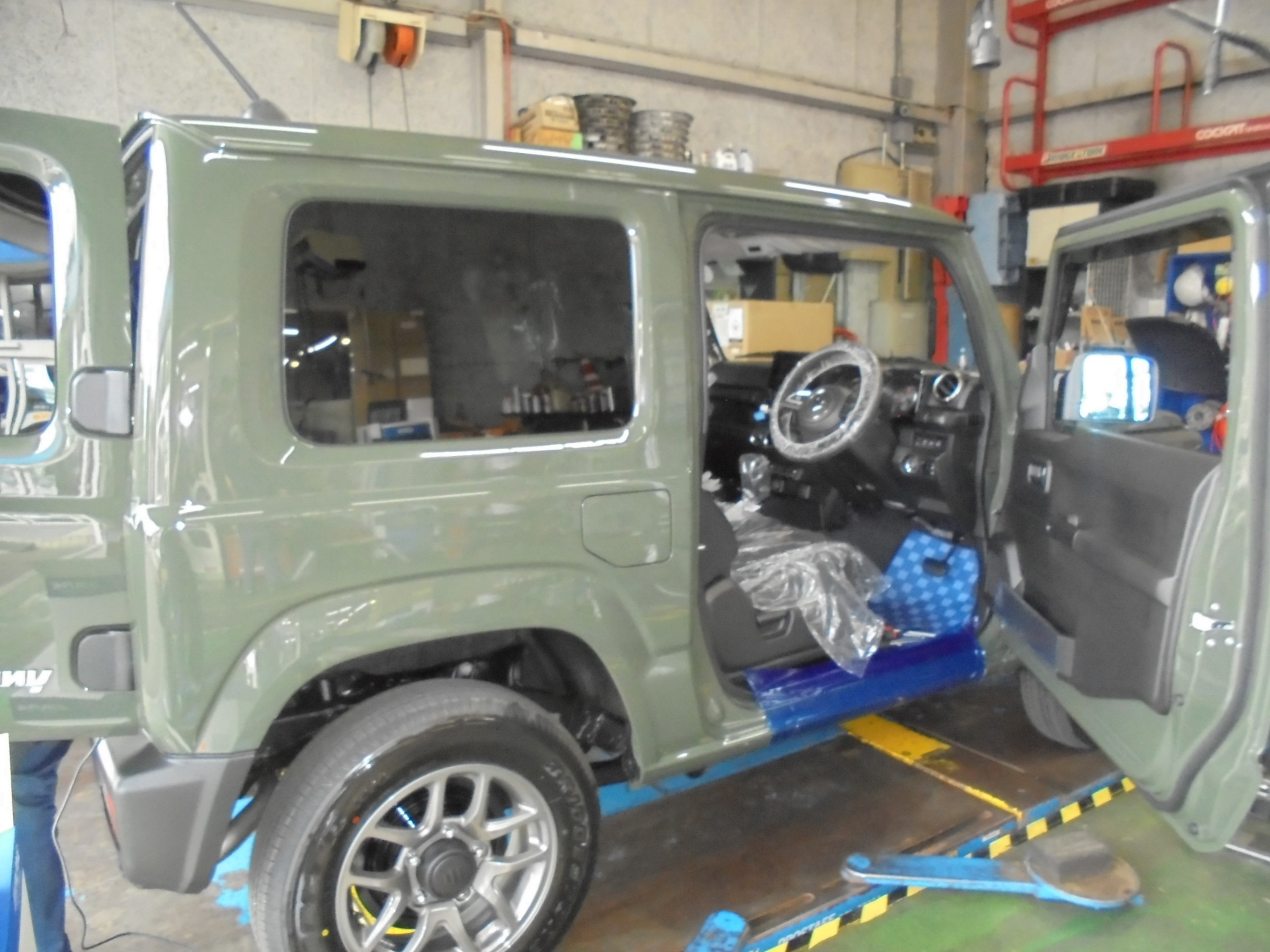 お車はディーラーさんから納車されたてのジムニーです(^^)/