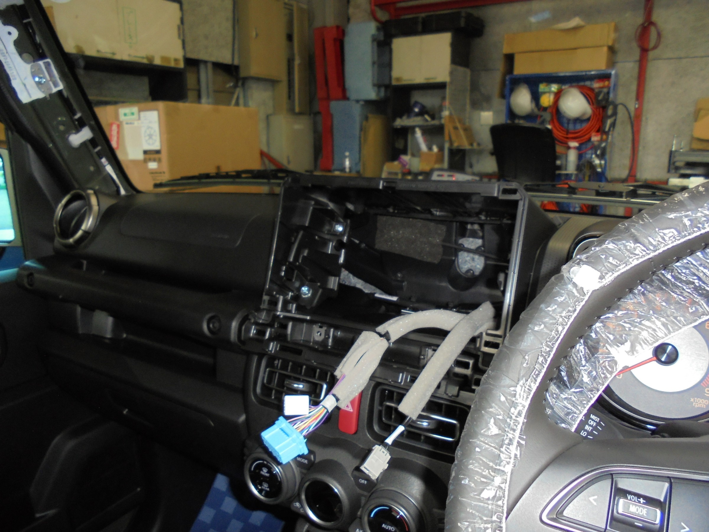 本日はまだ作業途中ですが、ジムニーのナビ&デジタルインナーミラーの