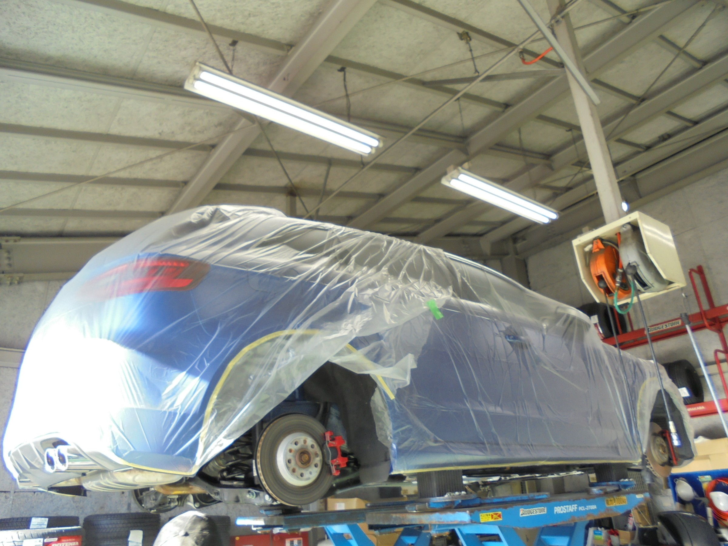まずは車体を養生して施工スタート(^^)/