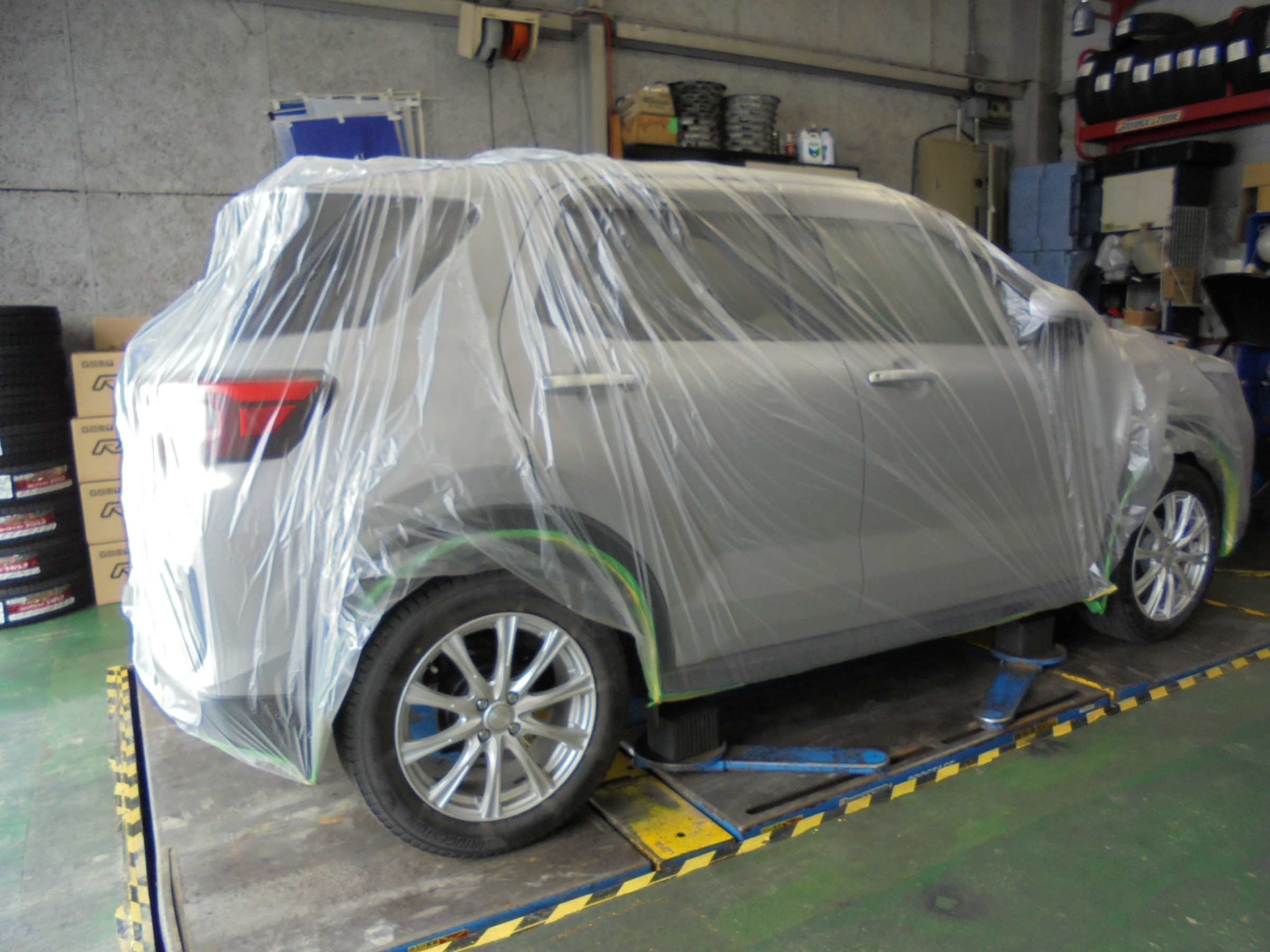 お次はお車を養生してウルト防錆の準備を進めます!