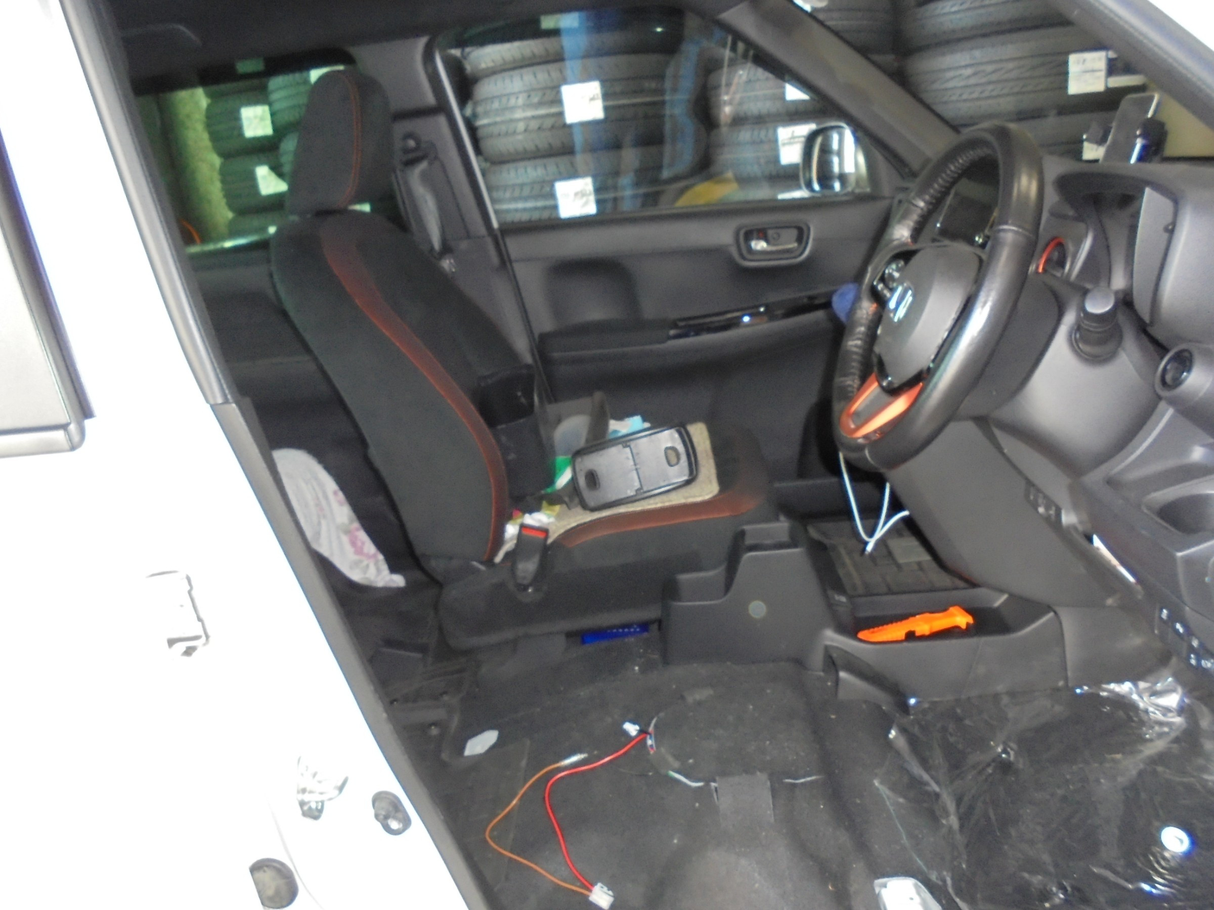 まずは純正シートを外して配線関係の段取りをします。