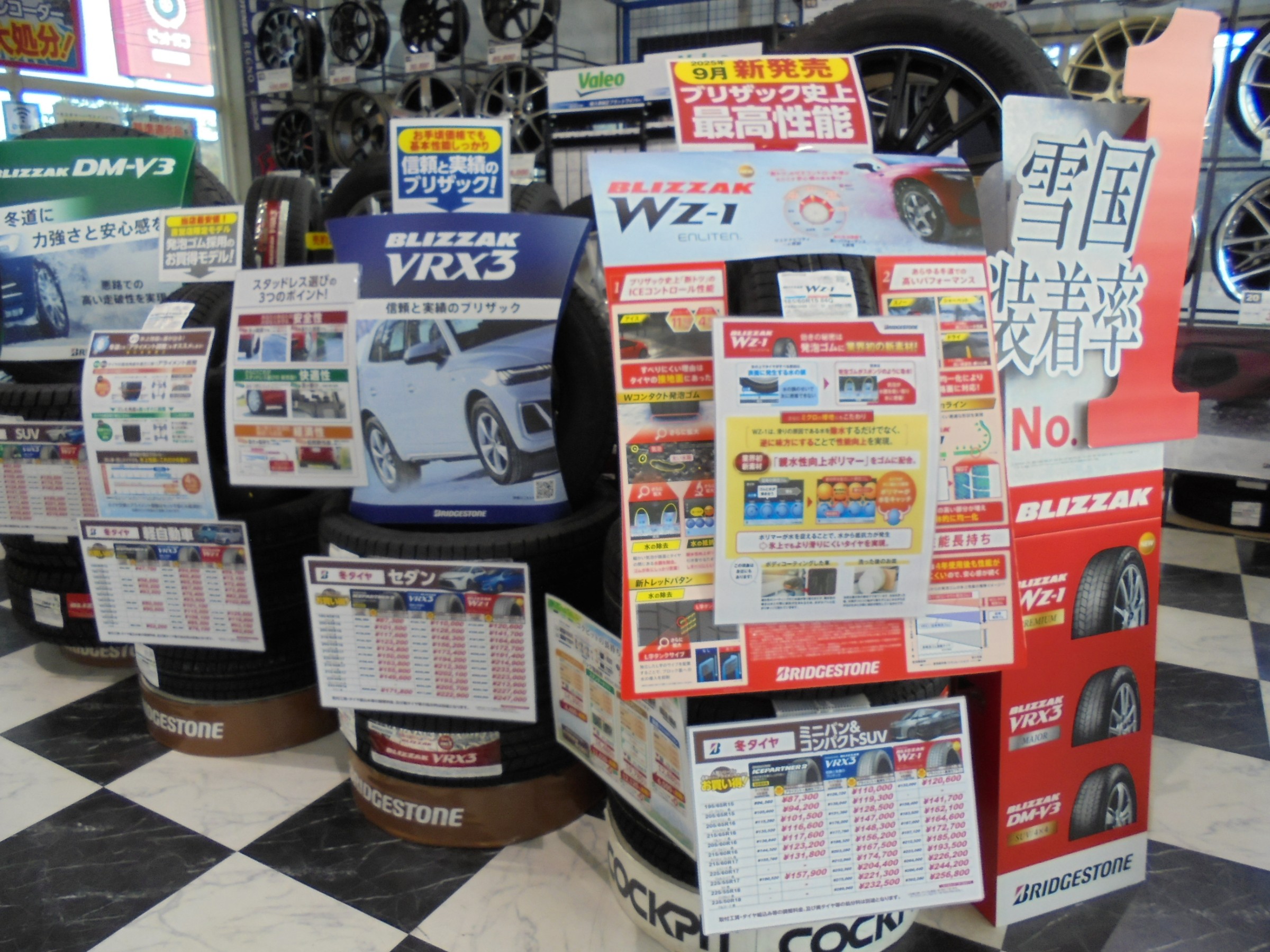 新商品のブリザックWZ-1を始め、VRX3、SUV専用のDM-V3と、お車に合った冬タイヤをご提案させて頂きます。