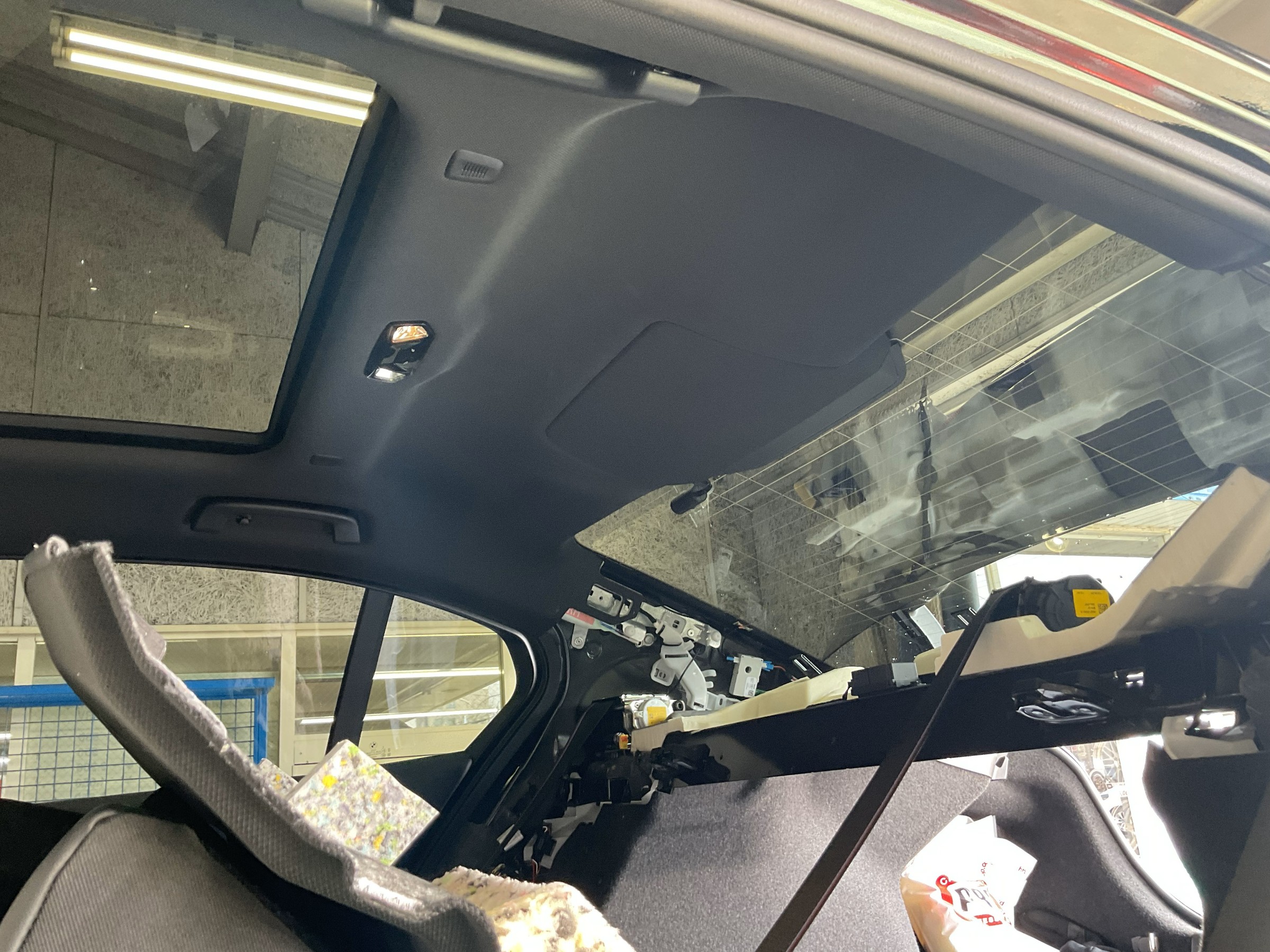 と言うのもBMWはリアのマウントが丁度リアシートの後ろのトレー下に付いていますので、内装を色々バラしてからの作業となります。