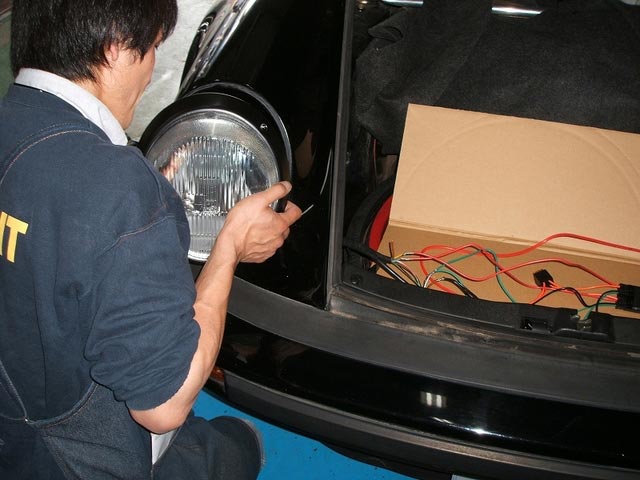 ヘッドライトハーネスはトランク内を通っているので、そこを切断しリレーを介しバッテリーより直接最短距離で電源供給。