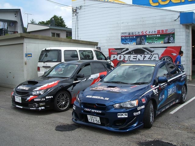 今日は「クスコデモカーのGRBインプレッサ」と「エンドレスデモカーのランサーエボリューションⅩ」がエキサイティングステージ前に当店に登場!!