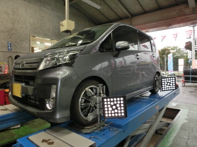 そしてムーヴのお客様は、アライメント調整でのご来店。前回、RS-Rのダウンサス取り付け後のアライメント調整です。キャンバー左右差も無くトー調整で済みました。