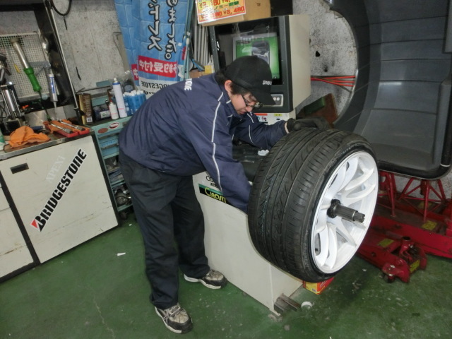 そして本日の将太君ですが.........忙しい中色々ありましたが、写真の夏タイヤの組み換えでは......江村君と交代していました。あまりにも太いのはまだ無理そうですね(笑