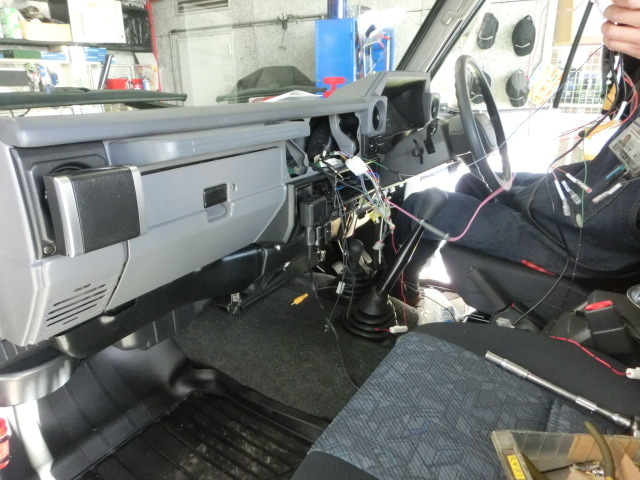 さて、本日は先日タイヤを購入いただいたお客様のランクル70に、パナソニックR300ナビとバックカメラを取付させて頂きました。