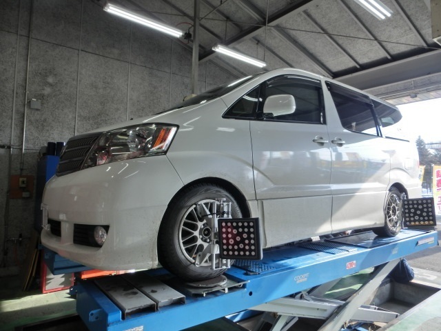 そんな本日は、アルファードのアライメント調整からスタートでした。