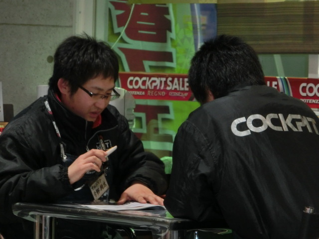 店員役とお客様役になり商談の練習です。早く覚えて自分にレグノ売れる位になってね。