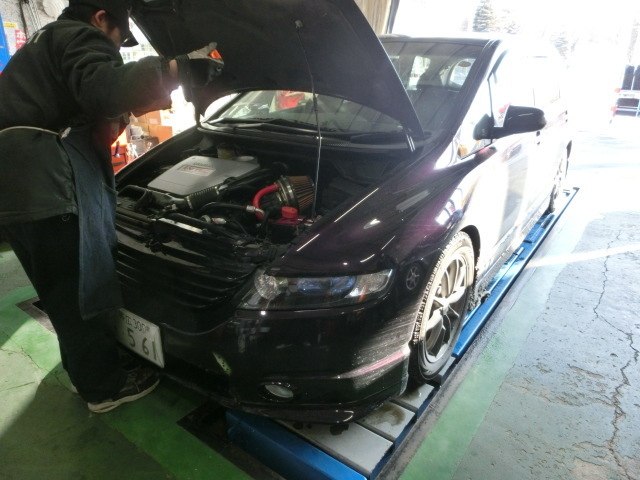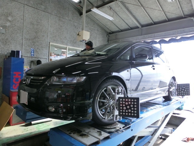 分かりづらいかもしれませんが、オデッセイのお客様でタイヤ交換とアライメント調整でのご来店。