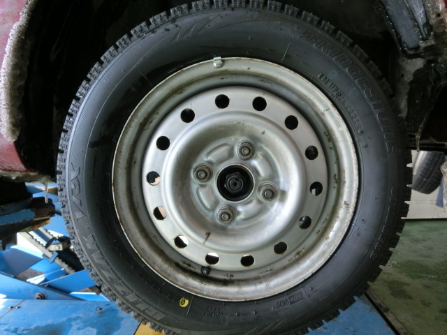 今までのご使用タイヤはブリザックMZ-02で、懐かしいタイヤです。14年前の製品ですが、距離を乗らないのと、きちっと保管されていたんでしょうね。意外と溝綺麗です。