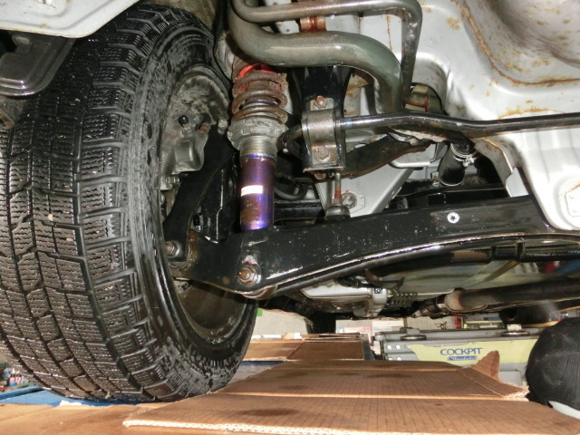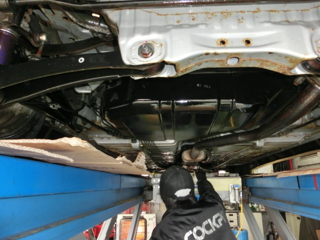 リフトアップして作業始めましたが、下回りに錆が出始めています。せっかくリフトアップしたので、ご一緒に防錆施工をさせて頂きました。