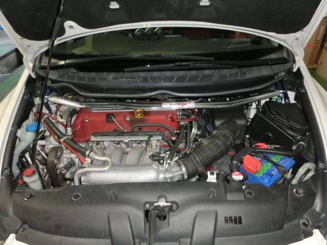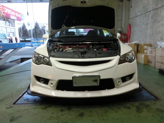 もう1枚の写真はシビックタイプRのお客様です。フロントのタワーバーを装着させて頂きました。こちらのお車は先日レカロシートも取り付けさせて頂いております。春が来るのが待ち遠しいですね。