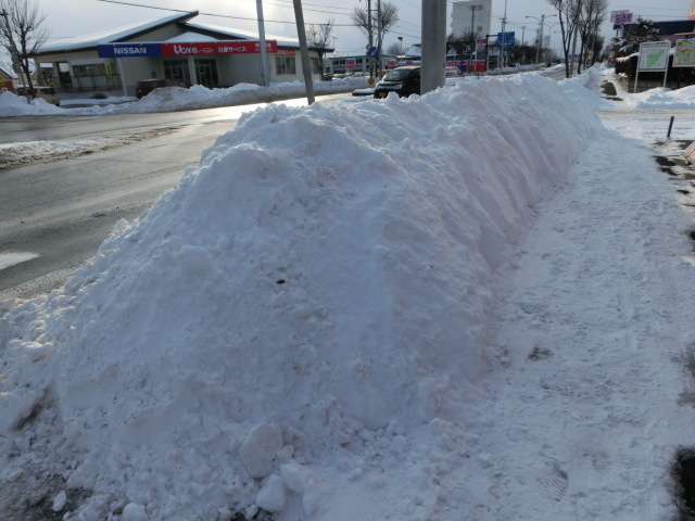 店頭も雪の山ができて.......本日は朝からスタッフ全員で雪掻きからスタートでした。