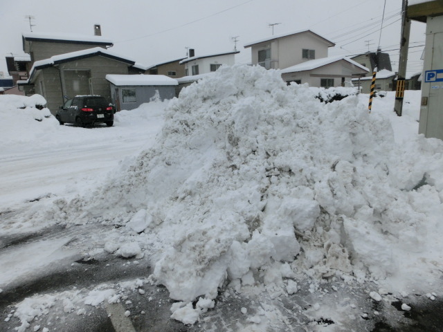 今時期の降雪は水分が多く人力では......本日は業者さんにお任せしました。
