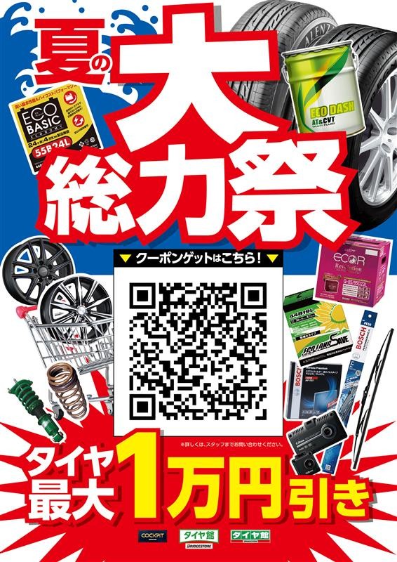 ※タイヤは上記QRコードからアプリダウンロードで値引きになります