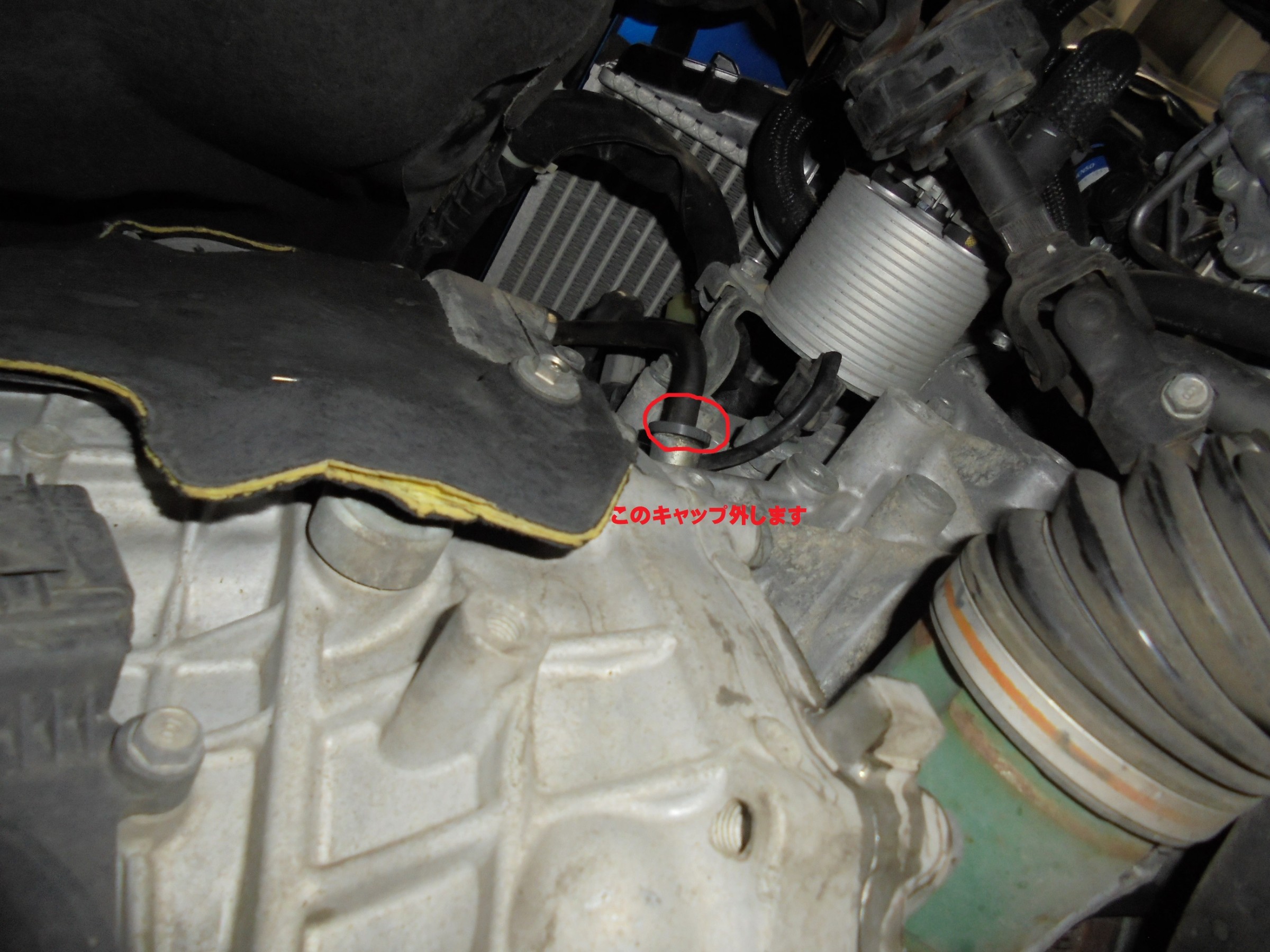 赤丸で囲んだ所のキャップ?を外して注入します(^^)/