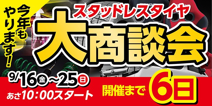 2022年9月10日 ツイート スタッドレスタイヤ大商談会カウントダウンです! コクピットアプリの準備はいいですか? 16日からお得なクーポンが配信されます。お得な9日間お見逃しなく。 9月23日からは帯広プレミアム商品券も使えますよ。 ご来店をお待ちいたしております。 ※21日水曜日は定休日となります Prev Next