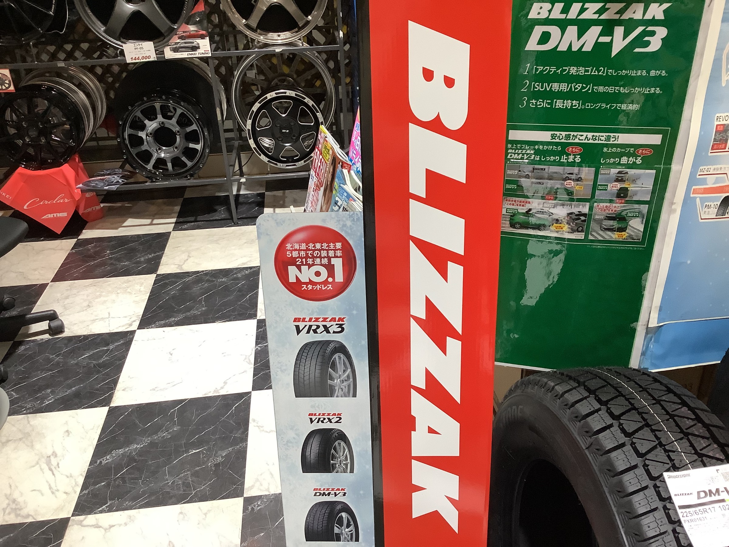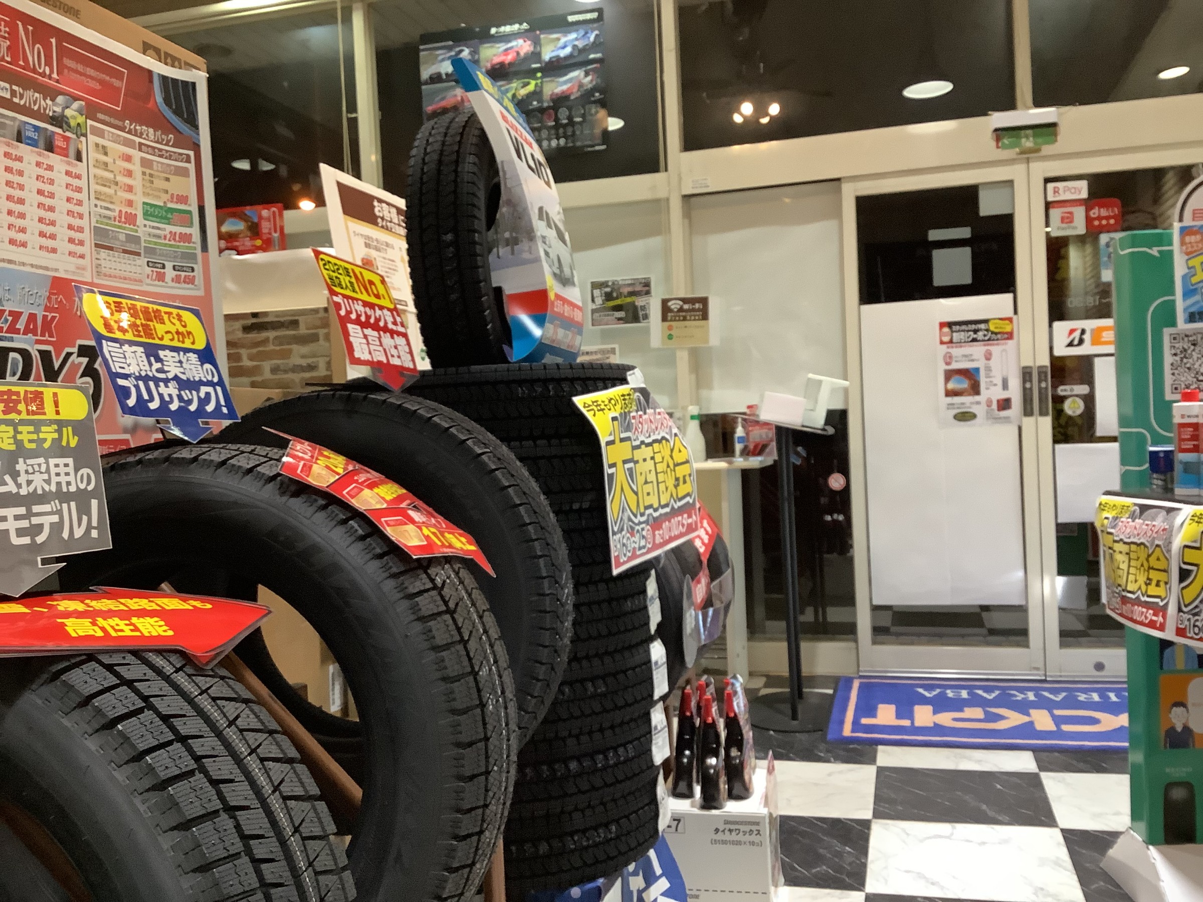 16日(金)から始まるスタッドレスタイヤ大商談会の準備。