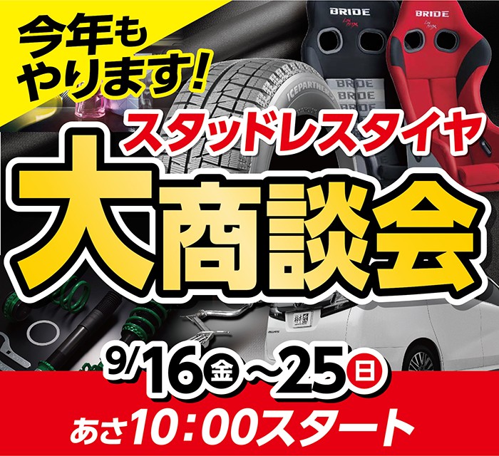 明日9/16日~9/25日の期間、スタッドレスタイヤ大商談会を開催します(^^)/