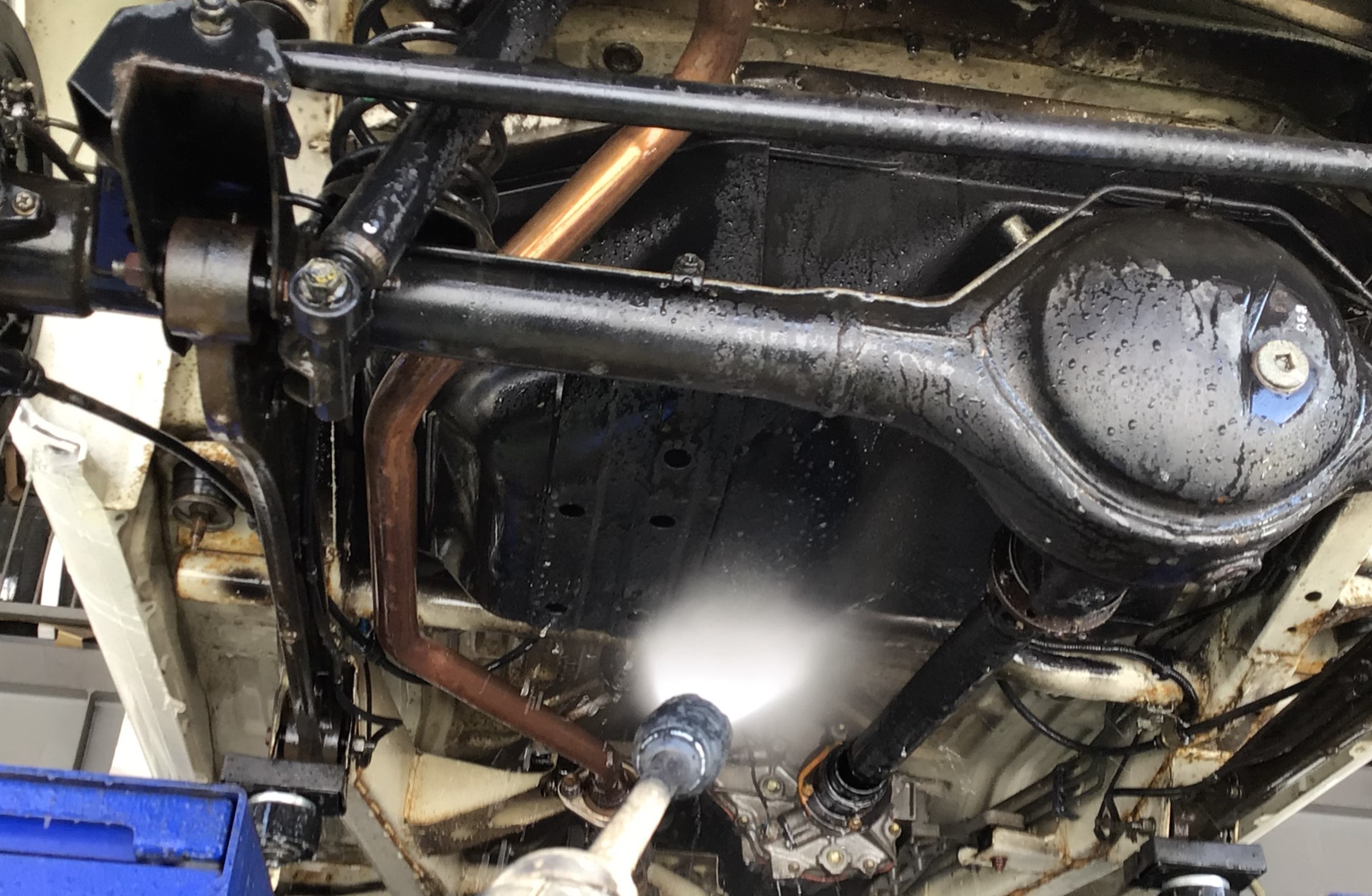 施工は下回り洗浄から開始します。