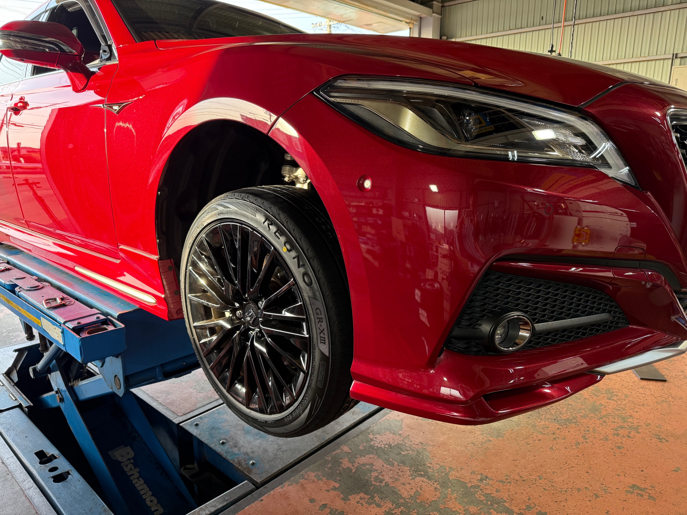 本日は220系クラウン ハイブリッドのタイヤをブリヂストンのレグノGR-XⅢに交換して、仕上げにアライメント調整をしました。