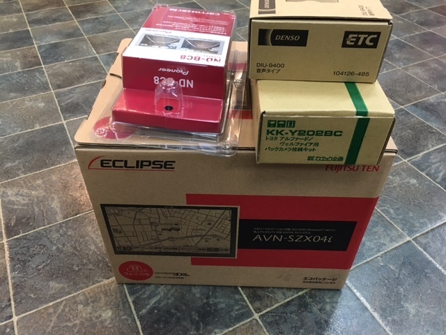 本日は30ヴェルファイアにイクリプスの9インチSZX04i、バックカメラはカロッツェリアのBC8,ETCはデンソーのDIU9400を取付しました。