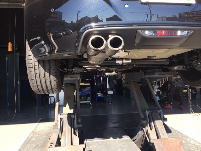 RCZにマフラー取り付けです。