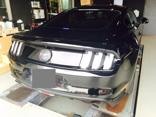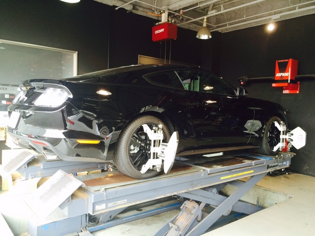 新車のマスタングのアライメント作業です。