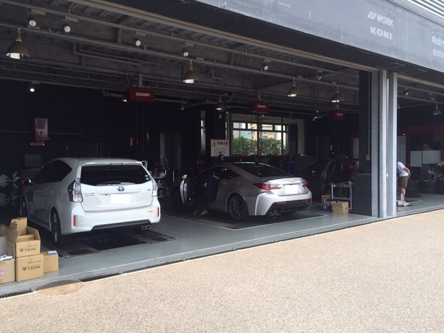 手前のプリウスαはJBLスピーカー取付後の点検でご来店。