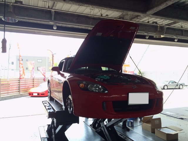 パッド交換です。作業は元S2000オーナーの大野スタッフが担当。