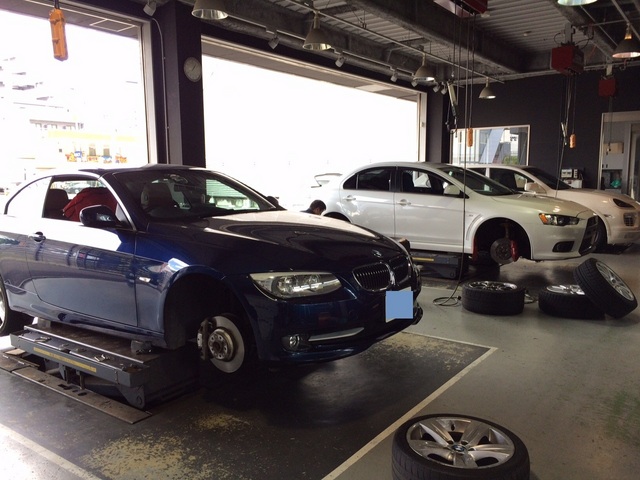 お隣はランエボXがタイヤ履き替え。