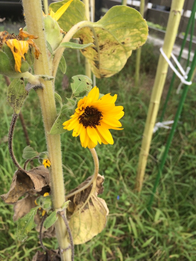 当店の入り口のヒマワリさんたちも、枯れて終了な