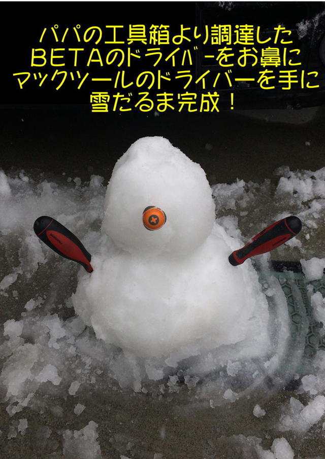 私の息子は朝から外に飛び出し雪だるまを