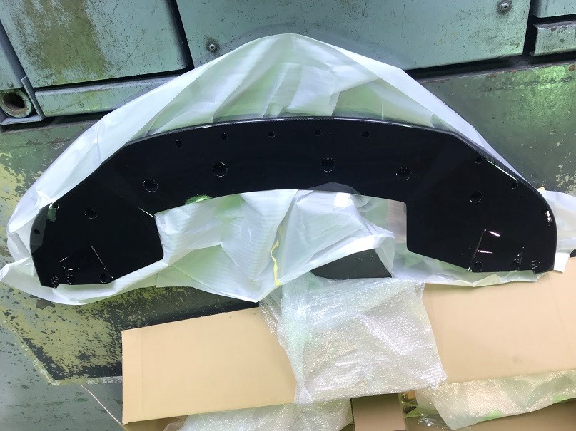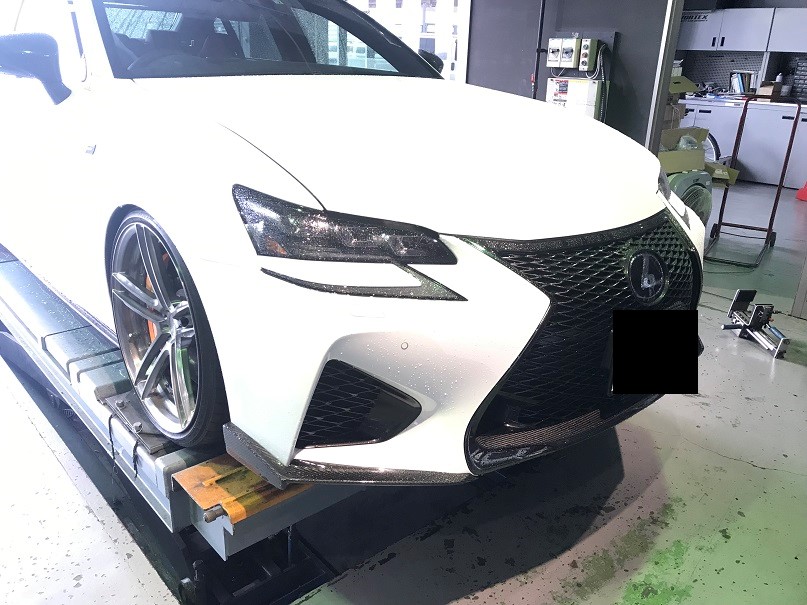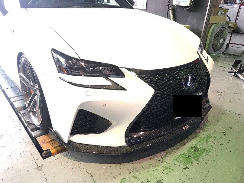綺麗なカーボンエアロを装着します。