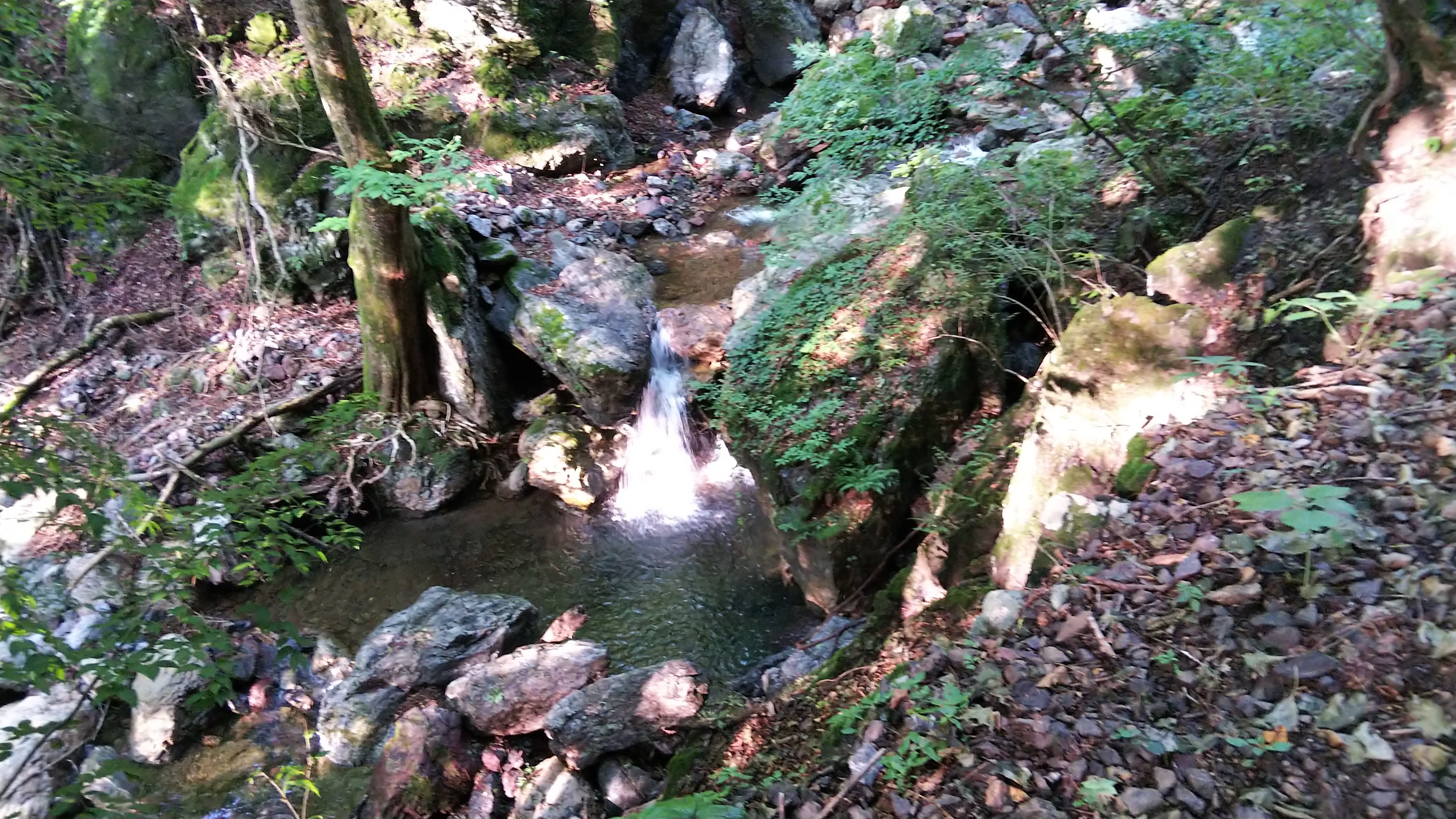 でも、沢沿いを進むので意外と涼しいです。