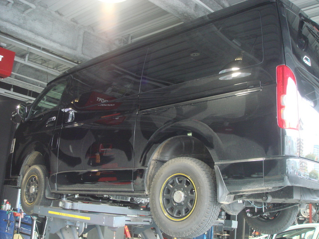 ハイエース大きなロールを抑える為にスタビライザーの取付を行いました。