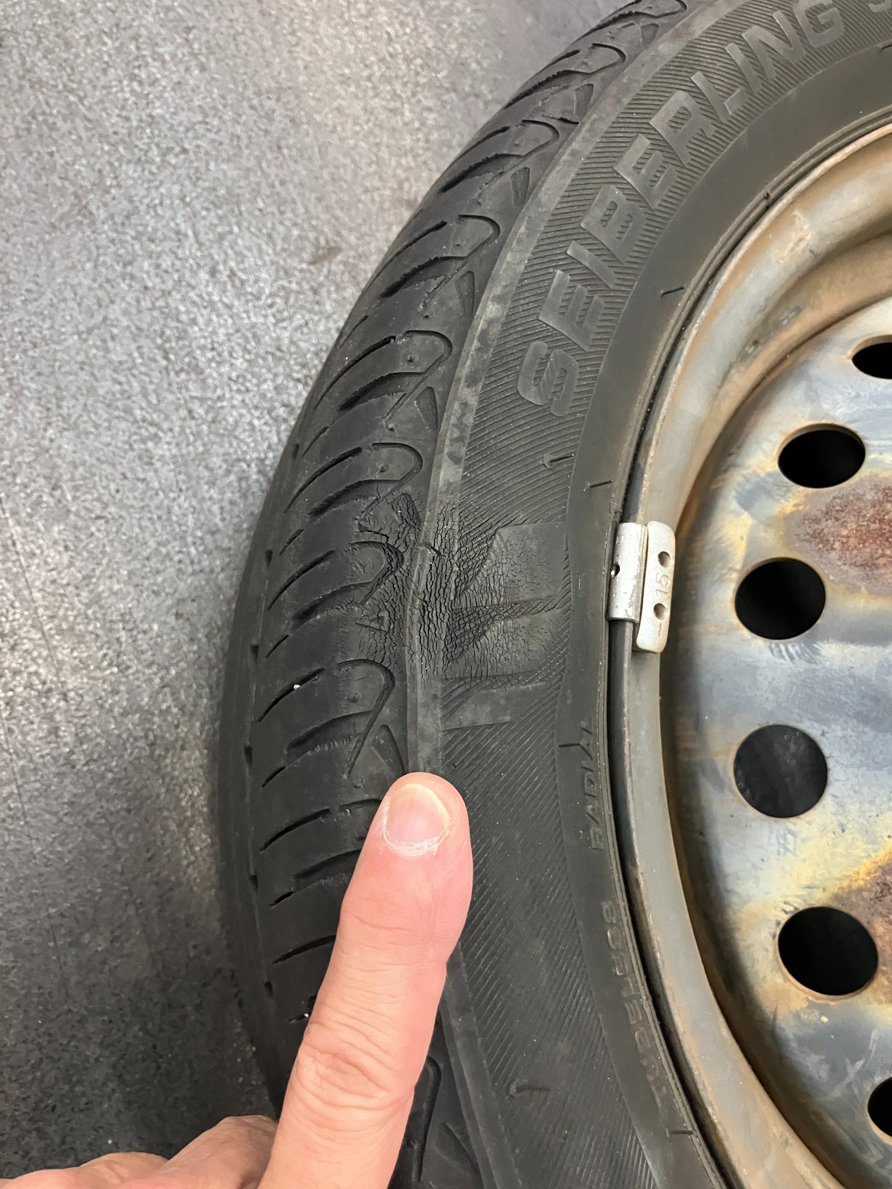 普段自分でタイヤ交換をされているお客様が、タイヤにタンコブが出来ていると持ってこられました。