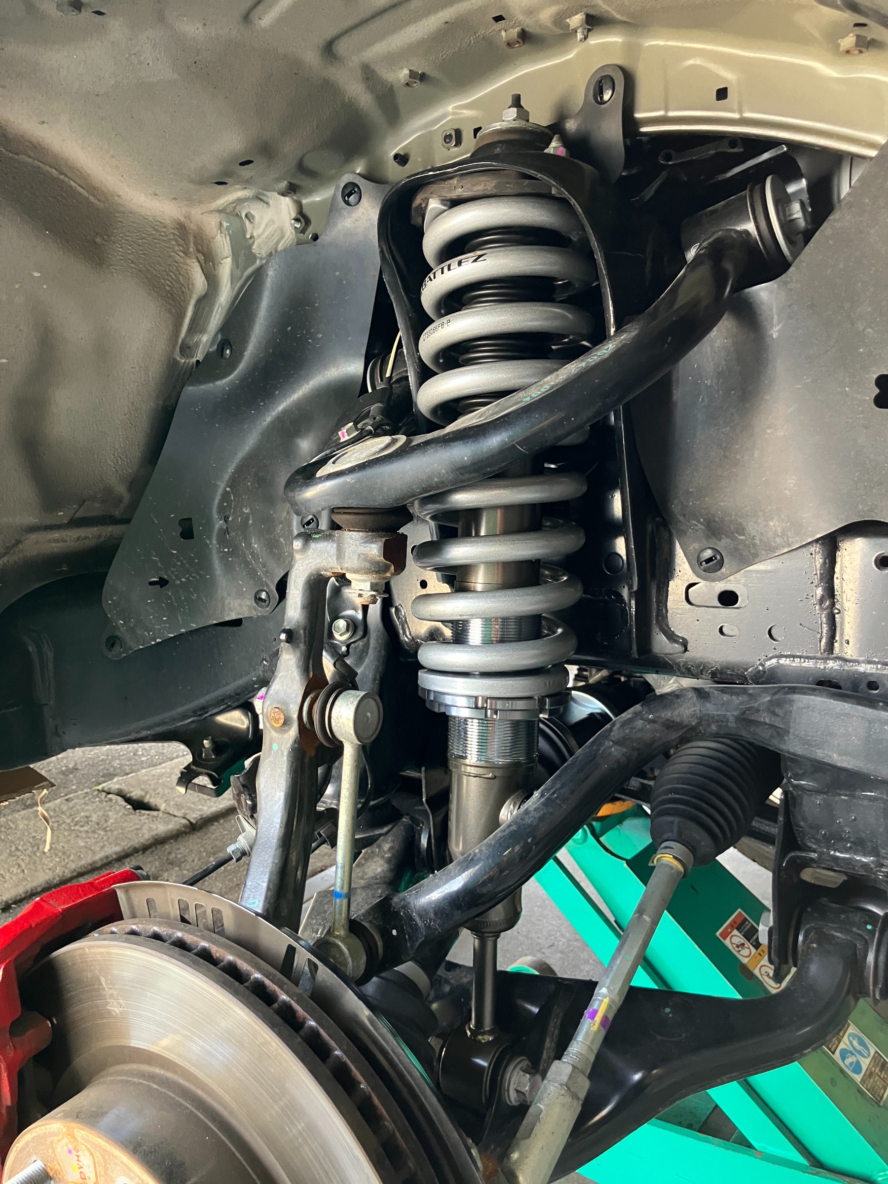 TOYOTAさん伝統?の前下がり(ケツ上がり?)の姿勢を直すために、フロントのみをUPします。