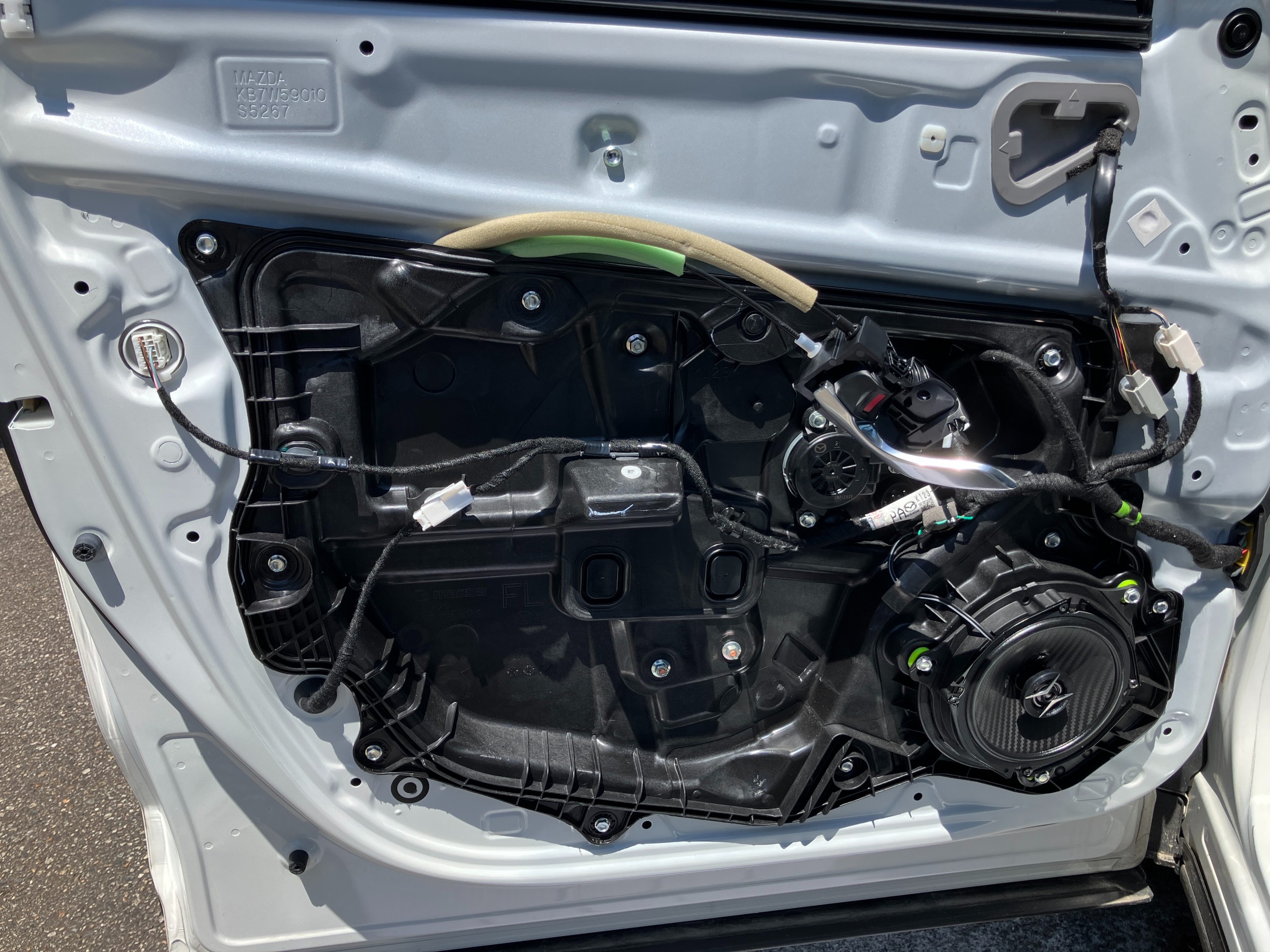 マツダ車も然りですが、最近はどんどんヘッドユニットを交換するという事ができなくなってきているので、車内の音響を良くするにはまずはスピーカー交換ですね。