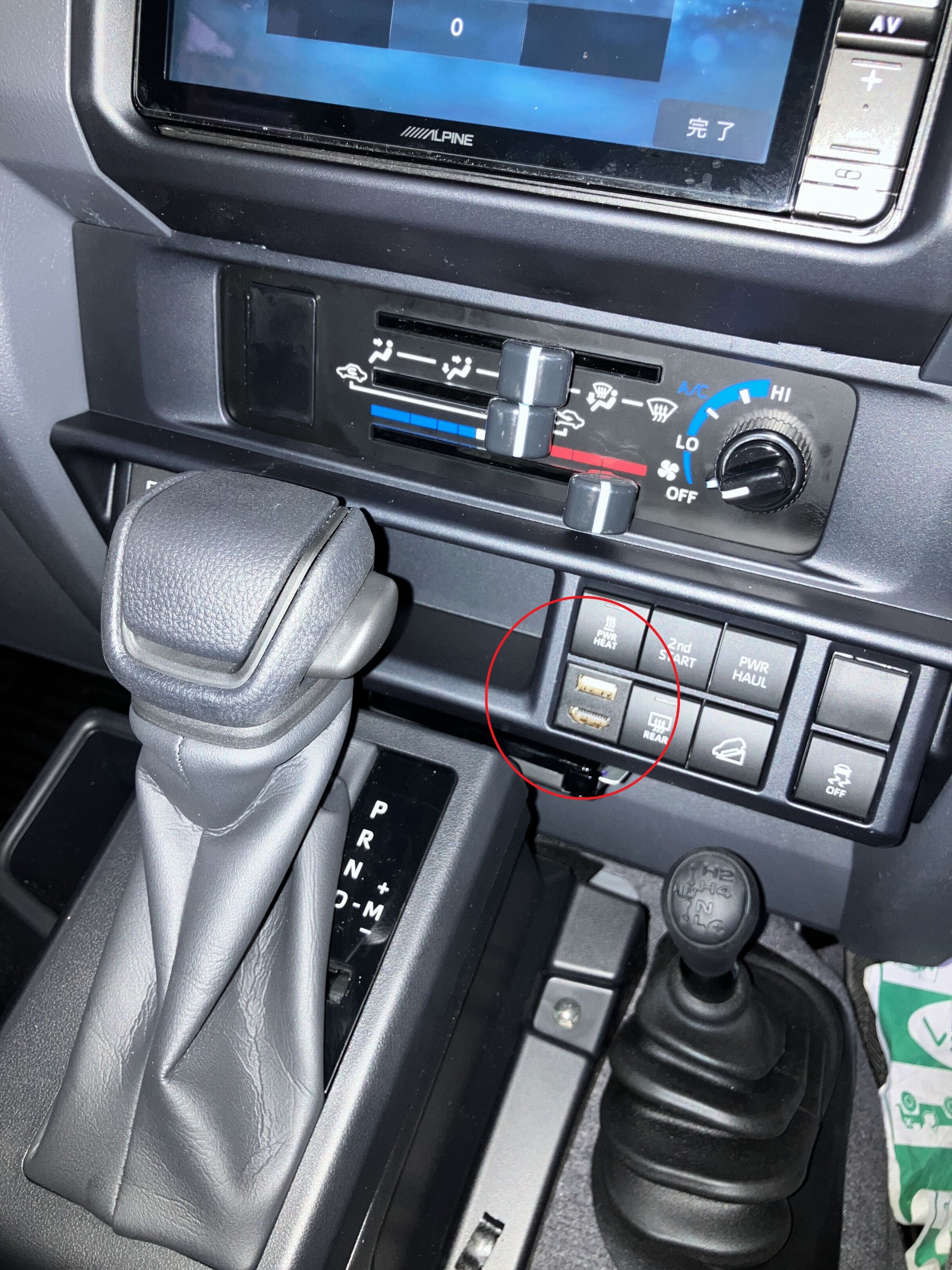 USBタイプCの充電ポートは純正で装備されていますが、今回はミラーリングできるようにHDMIポートを増設いたしました。