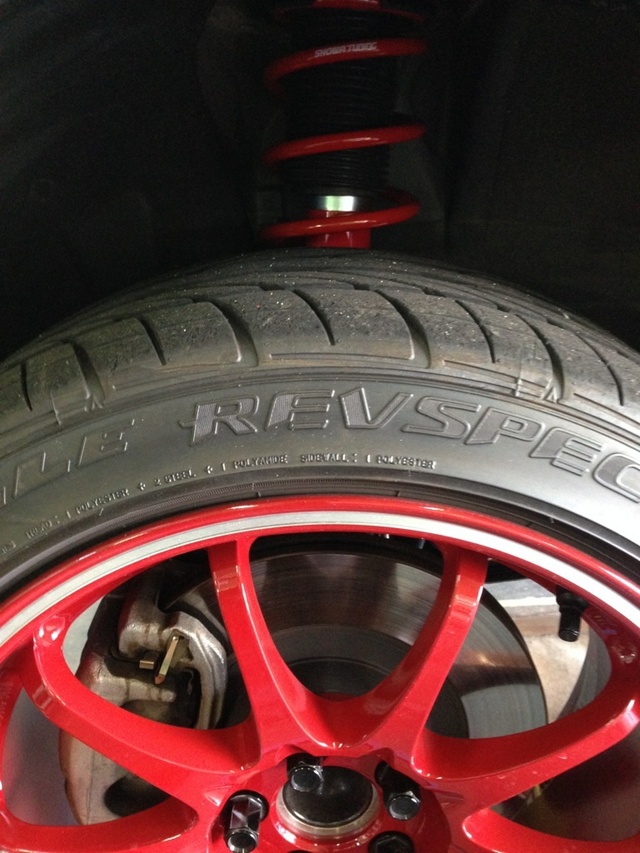 真っ赤なホイールの向こうにチラッと見える真っ赤なダンパーキットがナウい...