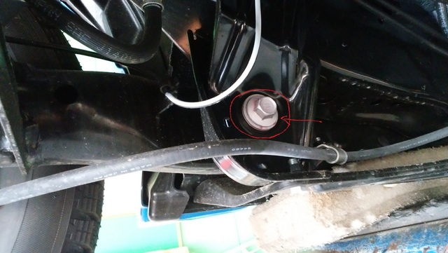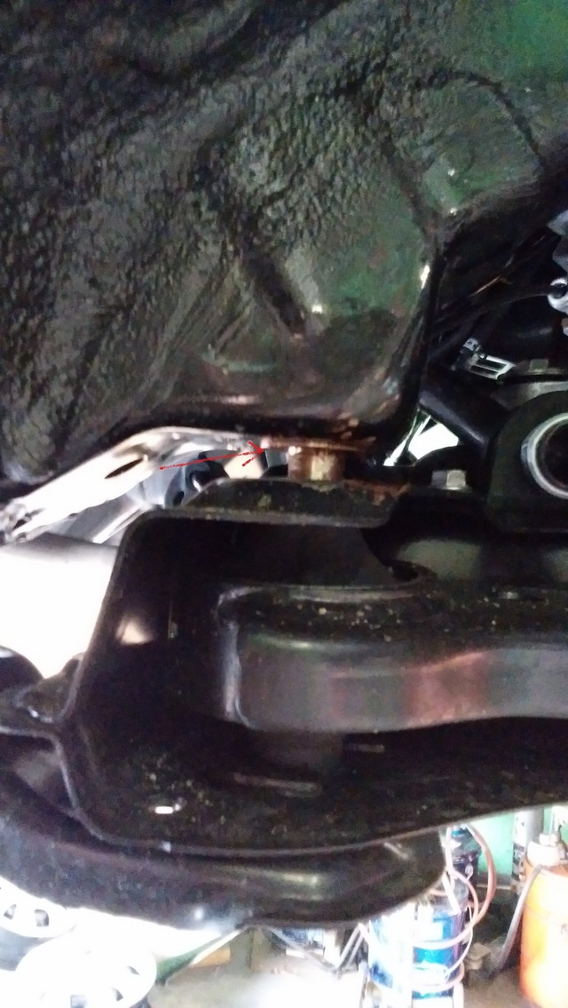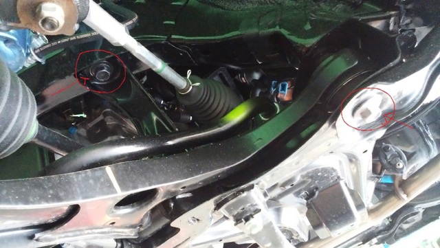 サブフレームを留めているボルトとロワアームの後ろのボルトの2カ所です。