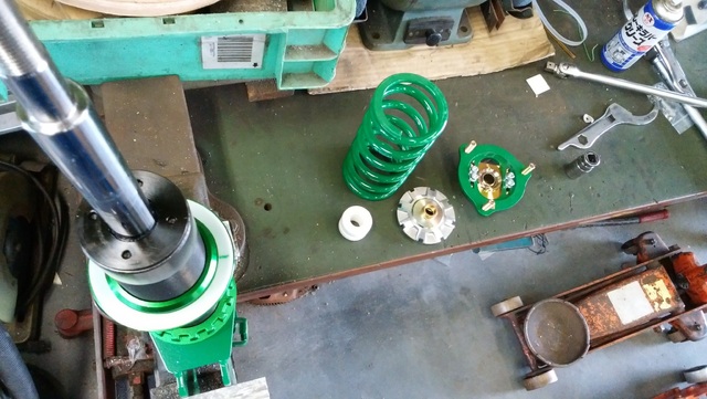 フロント用の様に、箱から出した時にすでに組みあがっている車高調などは、必ず一度バラしますよ~(理由はここでは書きませんが)( ̄▽ ̄)