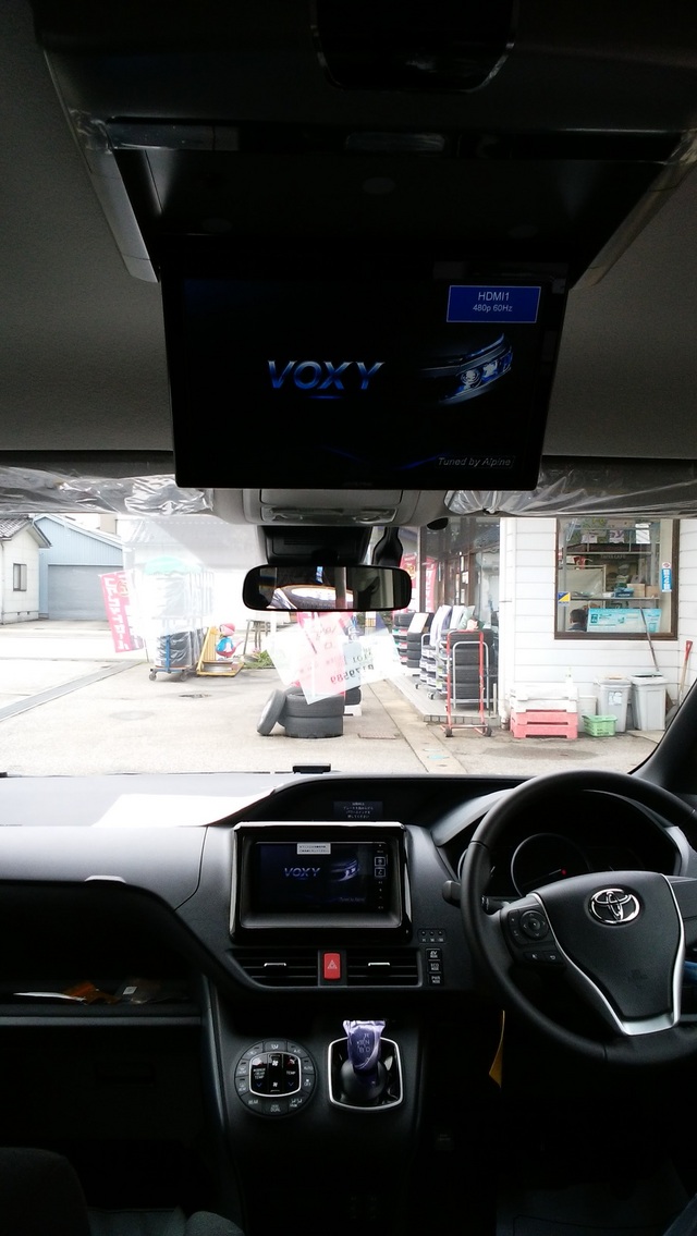 そんなVOXYにALPINEのナビ7W-VOと、ルーフモニターRSH10-L-Sと前後にカメラを取り付けしました。