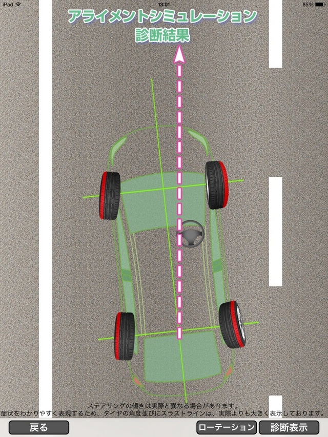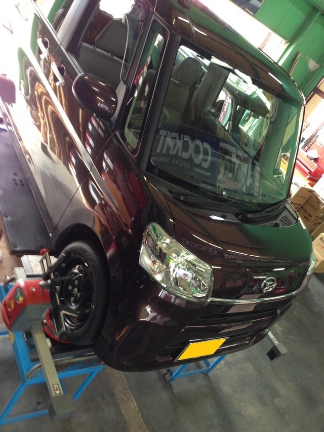 中古で購入されましてスタッドレスタイヤに交換時、外した夏タイヤを見ると内側が偏摩耗していたそうで4輪アライメント調整。